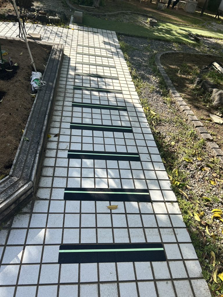 と意見ご意見を頂きまして、出入り口のタイルに滑り止めのシールを張ってみました!